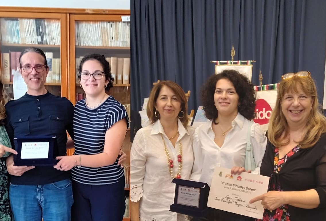 Tra i premiati augustani del concorso “Premio Nicholas Green” è stata premiata anche alunna Gaia Melissa della classe 3° C del liceo scientifico del Liceo Megara che, con successo, ha partecipato anche quest’anno alla campagna di sensibilizzazione e diffusione della cultura del dono nelle nuove generazioni, promossa dall’Aido (Associazione italiana per la donazione di organi, tessuti e cellule) attraverso il concorso “Premio Nicholas Green”.