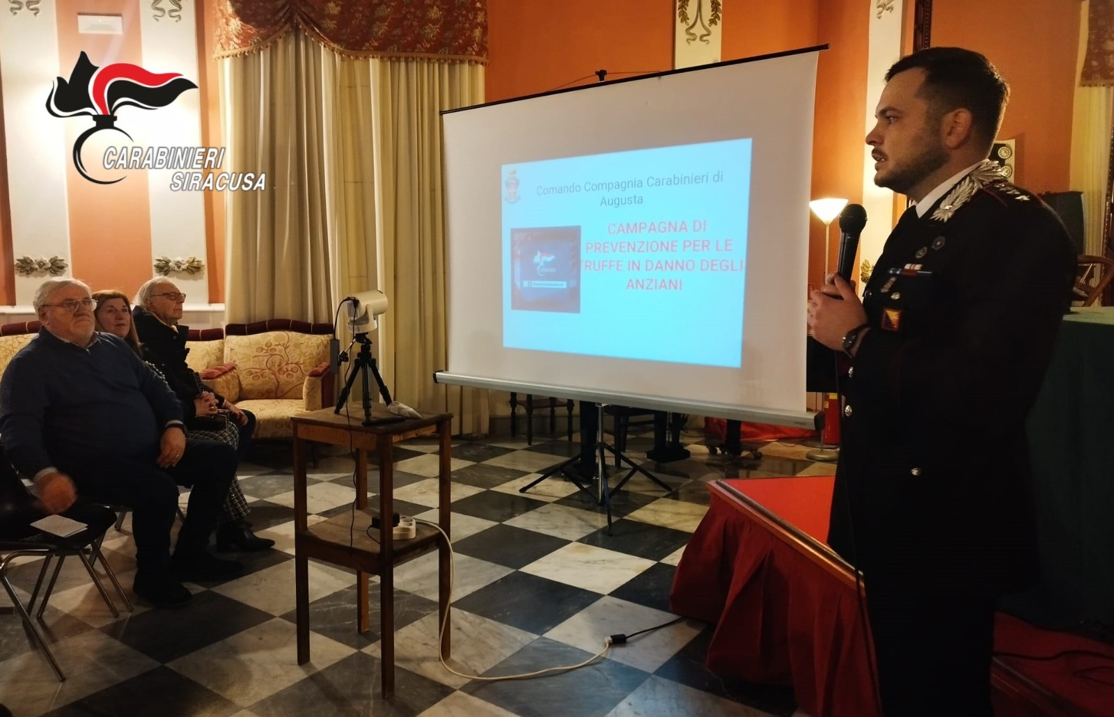 Durante la conferenza, il comandante della Compagnia Carabinieri di Augusta, capitano Luca Pisano, ha illustrato ai cittadini le principali tecniche utilizzate dai truffatori per circuire le vittime, soffermandosi anche sui comportamenti di autotutela da adottare per prevenire situazioni di rischio.