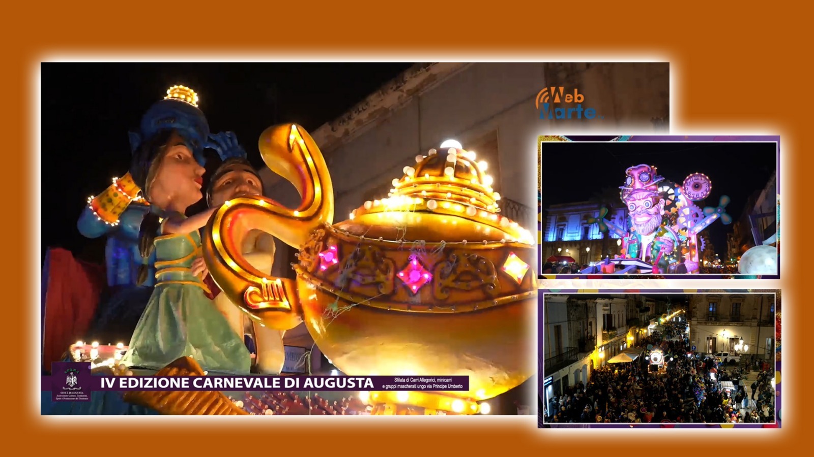 La diretta del Carnevale di Augusta su webmarte è una produzione esclusiva della KFP Television and Web productions, con interviste ai protagonisti e commenti in tempo reale a cura di Serena Tringali, permettendo così anche a chi non potrà essere presente di vivere l’atmosfera della festa.