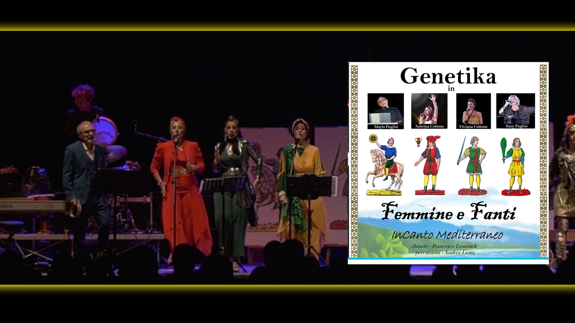 Un teatro sotto le stelle, quattro carte siciliane come scenografia e l’anima di una terra antica che vibra tra suoni, danze e parole: “Femmine e Fanti” è molto più di uno spettacolo. È un viaggio emotivo e sensoriale nel cuore della Sicilia, firmato dal gruppo Genetika, una famiglia artistica che ha scelto di non dirsi tale… ma di farlo sentire.