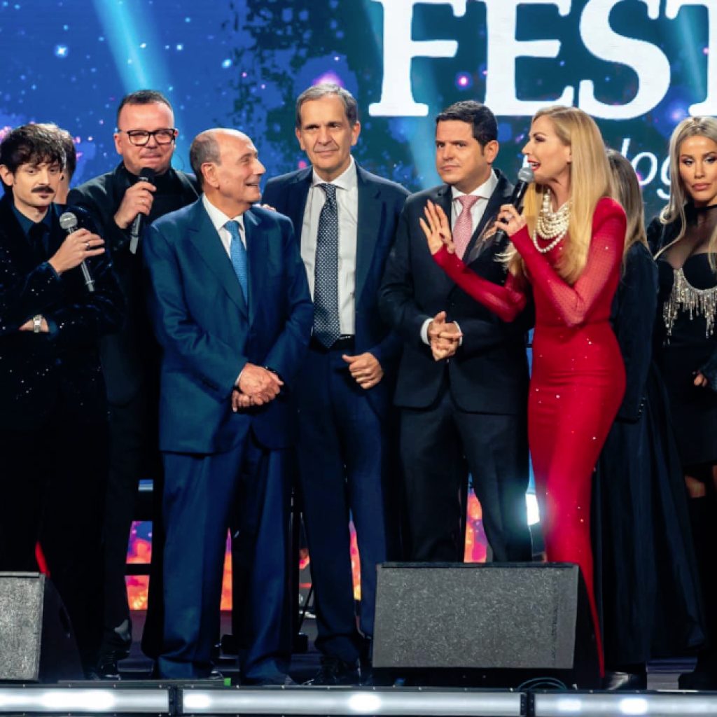 Per salutare il vecchio anno ed accogliere il nuovo sul palco insieme a Gabbani c’erano anche sindaco, assessori e la presentatrice.