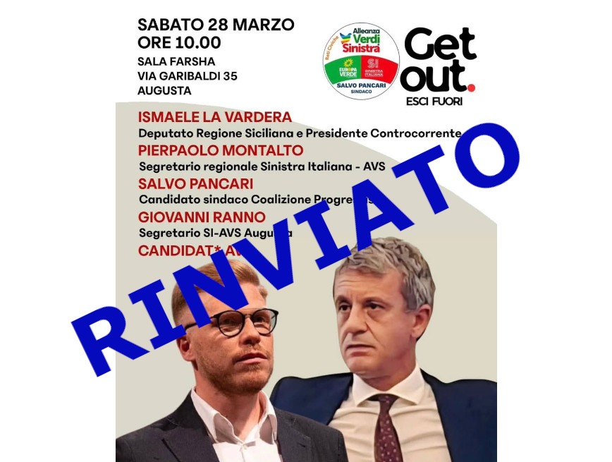 L’appuntamento, organizzato da Alleanza Verdi e Sinistra (AVS), era fissato, infatti, per le 10 nella sala Farsha di via Garibaldi 35. Oltre all’intervento di La Vardera, erano previsti quelli di: Pierpaolo Montalto, segretario regionale di Sinistra Italiana – AVS, Salvo Pancari, candidato sindaco della coalizione progressista e di Giovanni Ranno, segretario cittadino di SI-AVS e dei candidati di AVS.