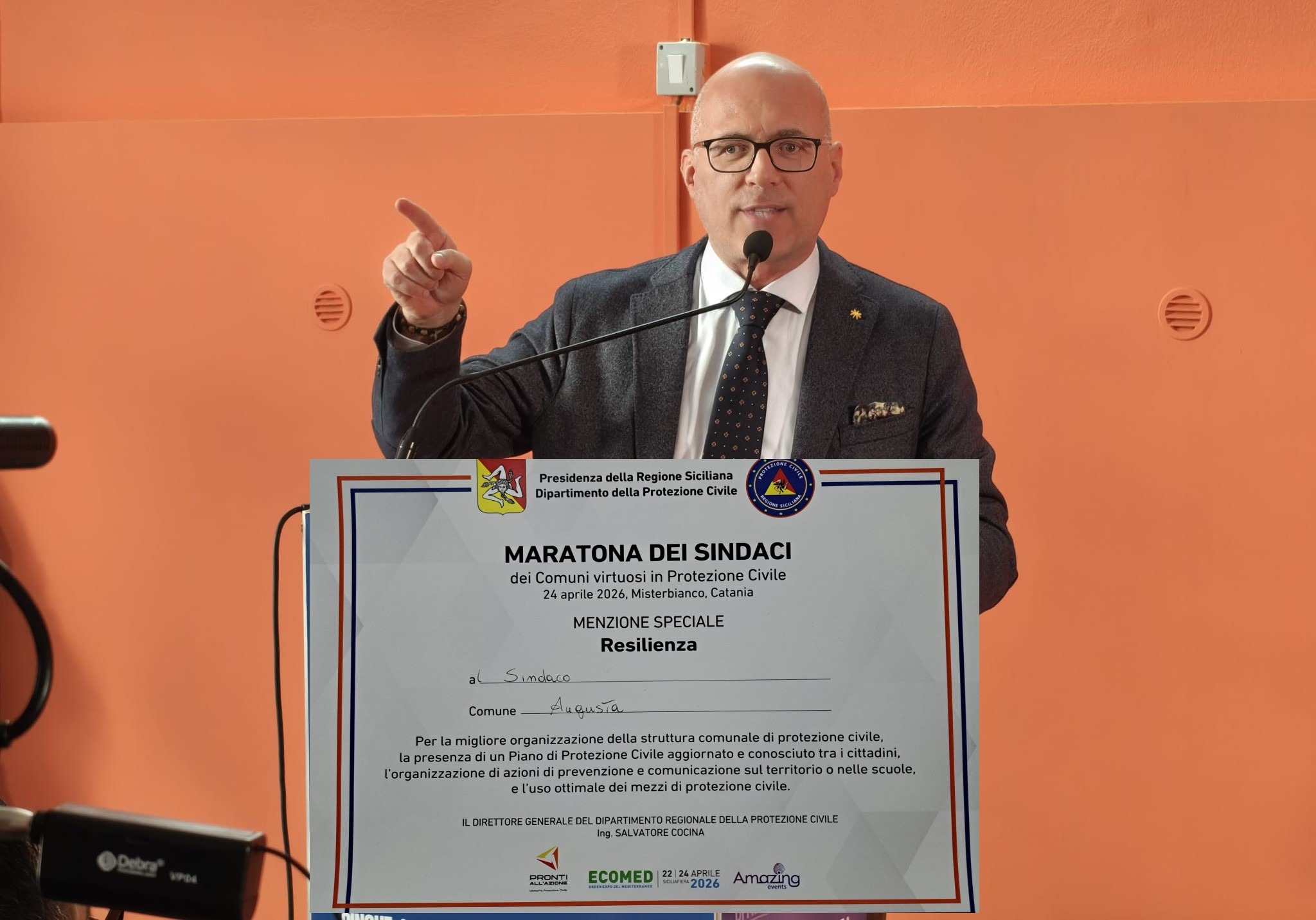 A parlare è il sindaco di Augusta, Giuseppe Di Mare, che esprime orgoglio per il prestigioso traguardo raggiunto dal Comune nel campo della Protezione Civile. Augusta si è infatti distinta in occasione della “Maratona dei Sindaci virtuosi in Protezione Civile”, svoltasi il 24 aprile scorso alla SicilFiera di Misterbianco, all’interno della manifestazione internazionale Ecomed.