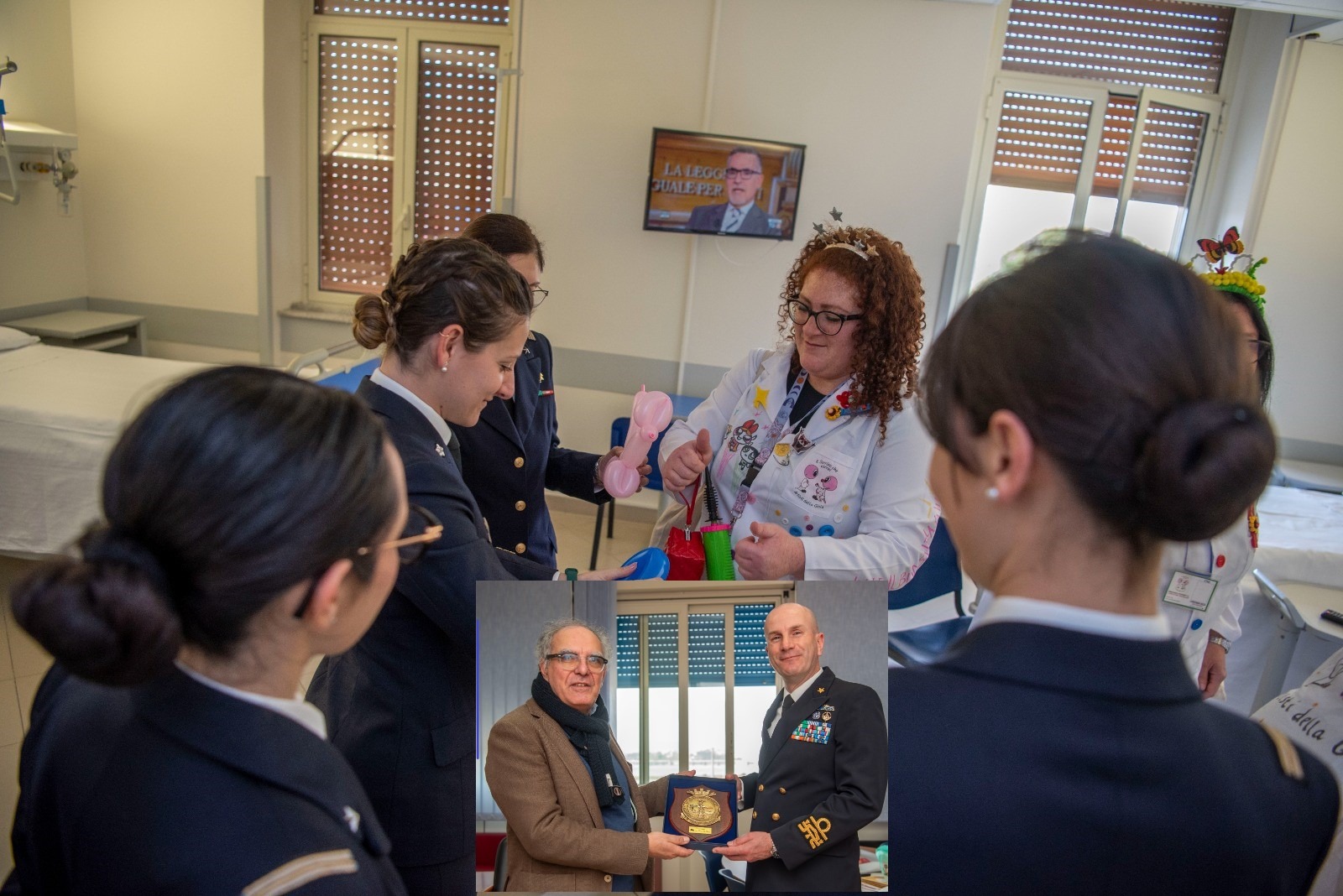 L’iniziativa, organizzata in occasione della Giornata Internazionale della Donna, ha visto la partecipazione anche della Quarta Divisione Navale. Il direttore dell’ospedale, Giovanni Licciardello, e il contrammiraglio Davide Da Pozzo, comandante della Quarta Divisione Navale, accompagnato da una rappresentanza di personale militare, hanno affiancato i volontari dell’associazione — i cosiddetti “nasi rossi” — nella visita ai reparti del nosocomio.