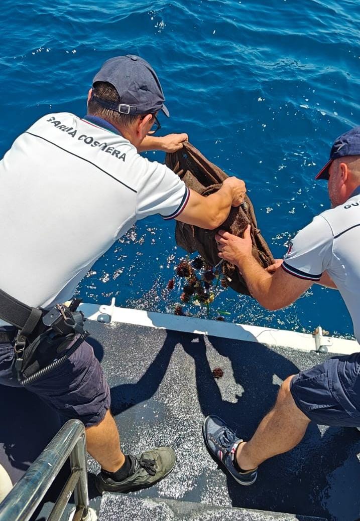 I ricci, ancora vivi, sono stati immediatamente sequestrati e restituiti al mare grazie all’intervento dell’unità navale militare CP 879, nel rispetto delle norme a tutela della fauna marina.