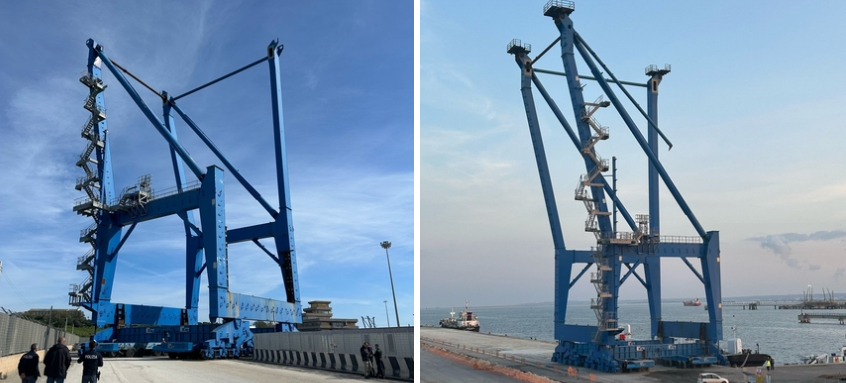 Il trasferimento, avvenuto tramite carrelli SPMT (Self-Propelled Modular Transporters), ha permesso di spostare le gru nell’area retrostante il pontile Ro-Ro, dove saranno sistemate e rimontate per poi essere utilizzate nelle operazioni portuali. Queste gru, destinate alle operazioni “ship to shore” (nave a riva), rappresentano una risorsa fondamentale per il porto di Augusta, che sta ampliando la propria capacità operativa.