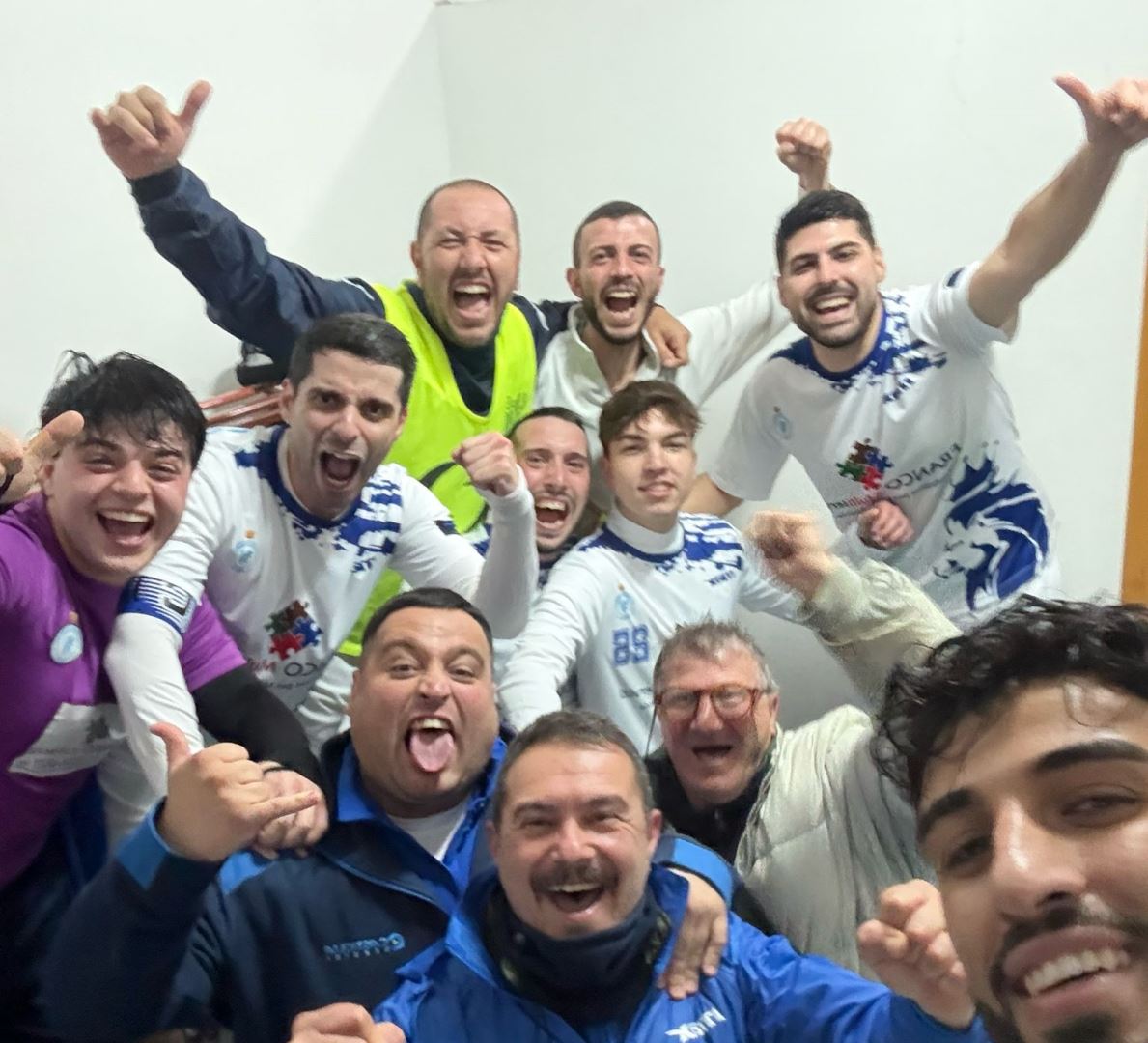 Dopo una prima fase di studio i biancoazzurri colpiscono in contropiede portandosi in vantaggio per 4 a 0 con doppietta di Mangano, goal di Urso e Barraco.