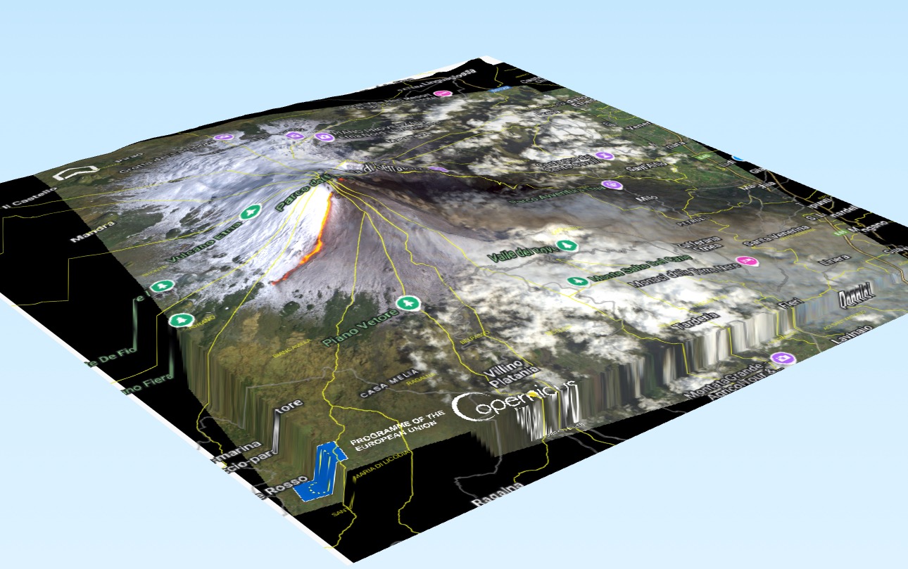 Il Dipartimento Regionale della Protezione Civile Sicilia (DRPC) ha reso disponibile una rappresentazione tridimensionale del Monte Etna, illustrando la colata lavica in corso.