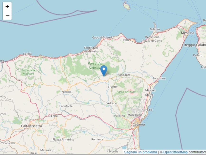 Una scossa di terremoto di magnitudo 3.3 è stata registrata alle 2 e 22 di stanotte tra i comuni di Cesarò e Maniace, nel Parco dei Nebrodi, al confine tra le province di Catania e Messina.
