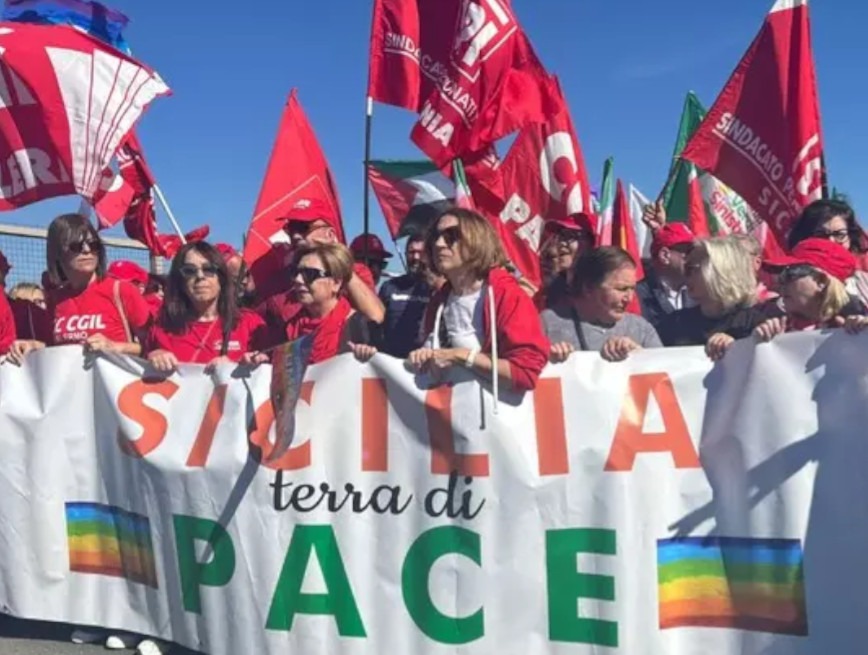 “La pace è il presupposto per lo sviluppo di questa terra ed è assurdo immaginare che la Sicilia sia piattaforma logistica di una guerra assurda, di una guerra che pagano i lavoratori e le lavoratrici”.