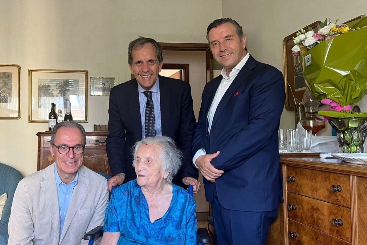 Il sindaco Enrico Trantino, insieme al vicesindaco Paolo La Greca e all’assessore Alessandro Porto, hanno portato il saluto della città alla “nonna di Catania”.