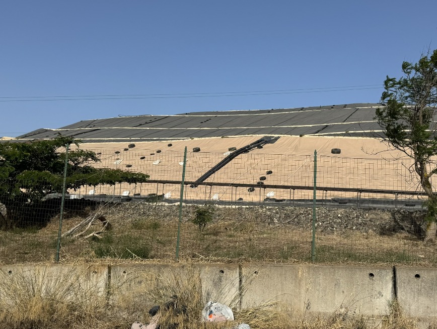 Attualmente la discarica è coperta provvisoriamente con teli in polietilene ad alta densità in attesa dell’intervento definitivo di copertura con terreno vegetale e alberatura.