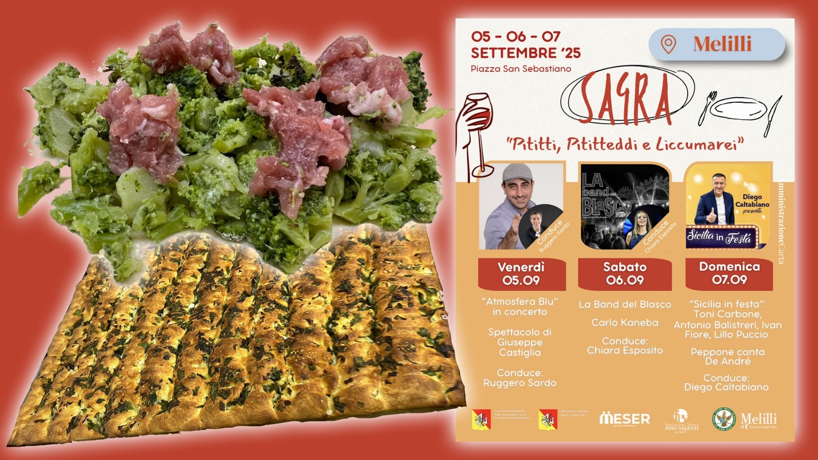 A Melilli continua il vivace calendario delle sagre, inaugurato il 30 agosto con la “sagra di comunità”. Tra gli appuntamenti più attesi di inizio settembre spicca il ritorno della sagra “Pititti, pititteddi e liccumarei”, in programma il 5, 6 e 7 settembre: l’evento animerà la suggestiva piazza San Sebastiano, trasformandola in un crocevia di sapori, tradizioni e momenti di convivialità.