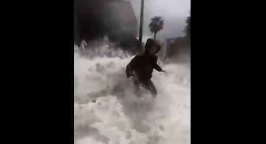 In diretta Facebook stavano mostrando quale era la situazione del forte maltempo e del ciclone Harry che si è abbattuto anche nel cuore di Santa Teresa di Riva, nel messinese, quando sono stati raggiunti e quasi travolti da un’onda altissima arrivata ben oltre la strada.