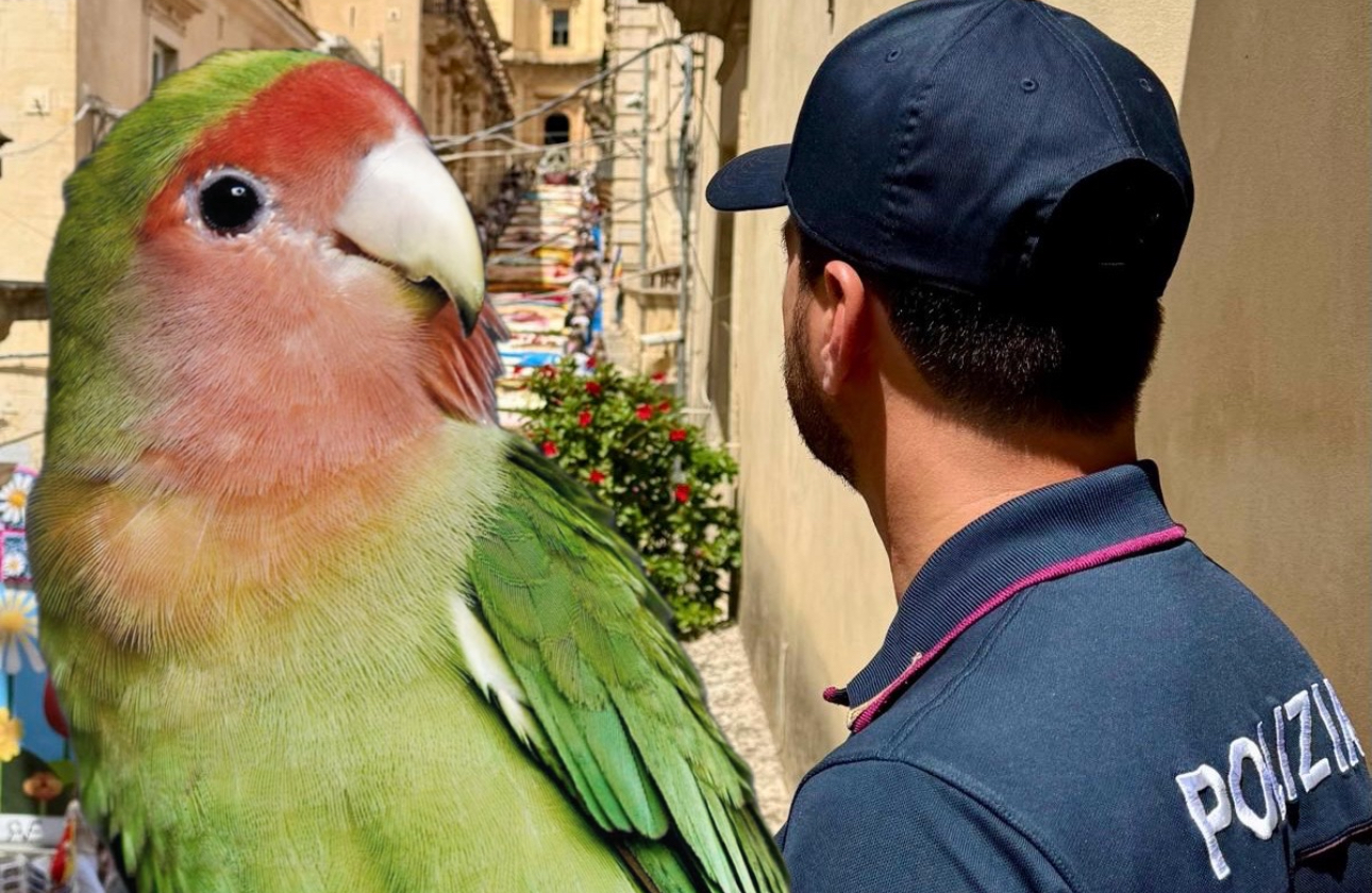 I poliziotti, in forza al Commissariato di Pubblica Sicurezza di Noto, hanno fermato due uomini intenti a vendere giocattoli. Nel corso della verifica, è emerso che uno dei due nascondeva all’interno di un marsupio un esemplare di agapornis, un piccolo pappagallo noto anche come “inseparabile”.