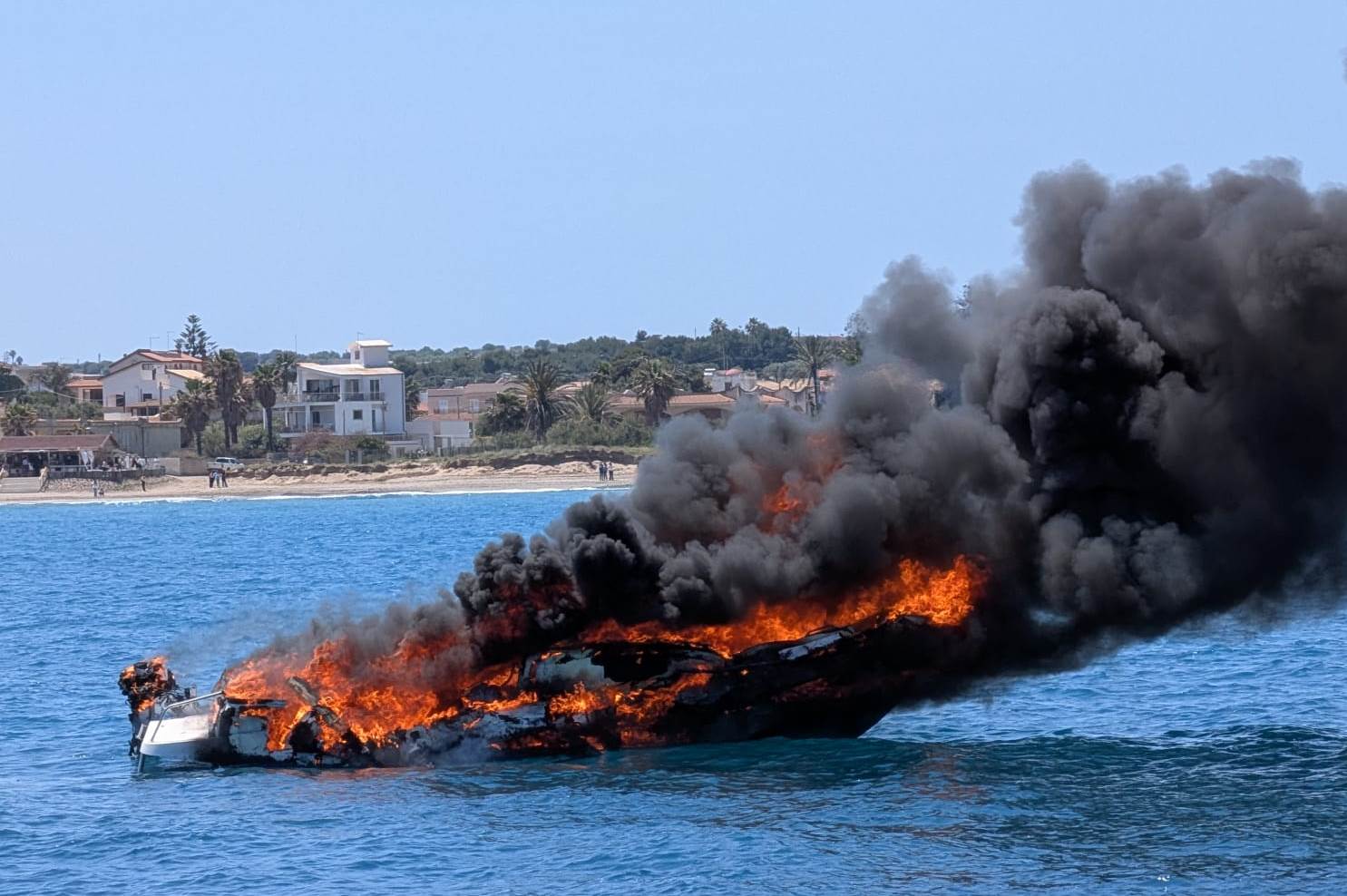 L’imbarcazione è stata quasi totalmente avvolta dalle fiamme, affondando nelle acque antistanti la suddetta località