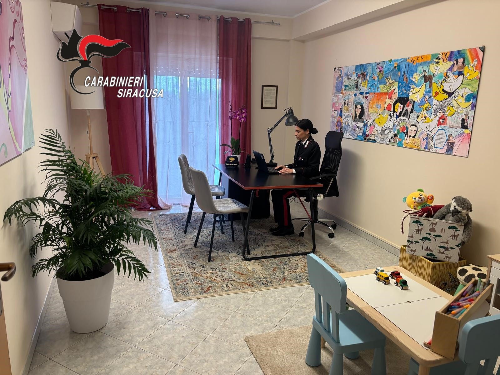 Il tenente colonnello Sara Pini, comandante del reparto operativo dei Carabinieri di Siracusa, nel ringraziare l’ associazione Soroptimist d’Italia, Club Val di Noto, per aver creduto e investito in questo progetto contribuendo alla realizzazione di un ambiente che aiuterà a rendere meno traumatico il percorso delle vittime che si affidano alle Istituzioni, ha ricordato come la collaborazione tra le forze dell’ ordine e la società civile, così come l’esistenza di una rete inter istituzionale, siano un valori fondamentali per costruire una comunità più giusta e solidale.