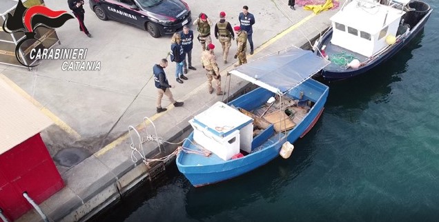 Nel corso dell’esecuzione delle misure, nella mattinata del 19 febbraio, si è altresì proceduto alla perquisizione dei locali e dei pescherecci dei 2 uomini rinvenendo, proprio in prossimità di uno di questi, una rete da pesca il cui furto era stato denunciato alla Stazione Carabinieri di Riposto.