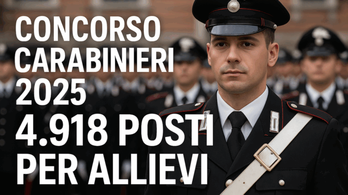 L’Arma dei Carabinieri ha pubblicato il bando per il concorso di Allievi Carabinieri 2025, con 4.918 posti disponibili per giovani che desiderano entrare a far parte dell’Arma.