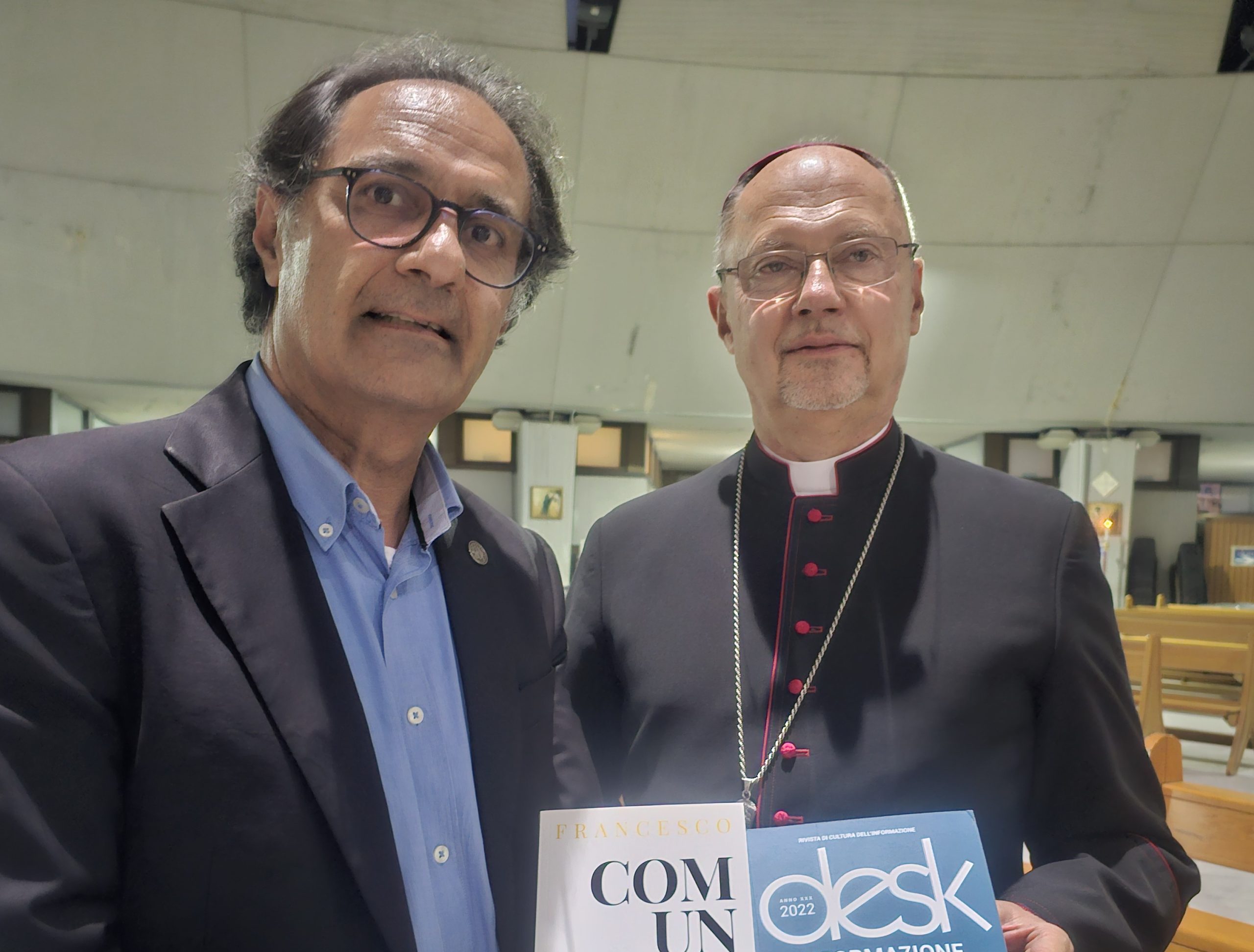 Di Salvo ha consegnato al presule una copia del volume “ComunIcare. 20 giornalisti in dialogo con il Pontefice”, a cura di Vincenzo Varagona e Salvatore Di Salvo, edito dalla Lev (Libreria Editrice Vaticana) e una copia della rivista trimestrale “Desk” “Informazione e Comunicazione #Pensare il Futuro”, edito dall’Ucsi.