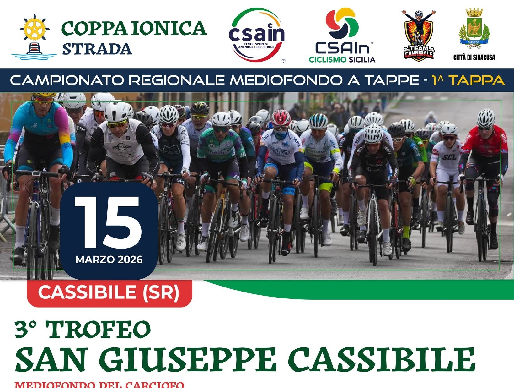 Cresce l’attesa per il 3° Trofeo San Giuseppe Cassibile – Mediofondo del Carciofo, evento inaugurale del calendario regionale CSAIn Ciclismo Sicilia. La manifestazione, organizzata dall’A.S.D. Team Cannibale presieduta da Serena Rubino, radunerà oltre 200 ciclisti pronti a sfidarsi lungo un percorso di 85 chilometri tra le strade della Sicilia sud-orientale, in un contesto che unisce sport, tradizione e valorizzazione del territorio.