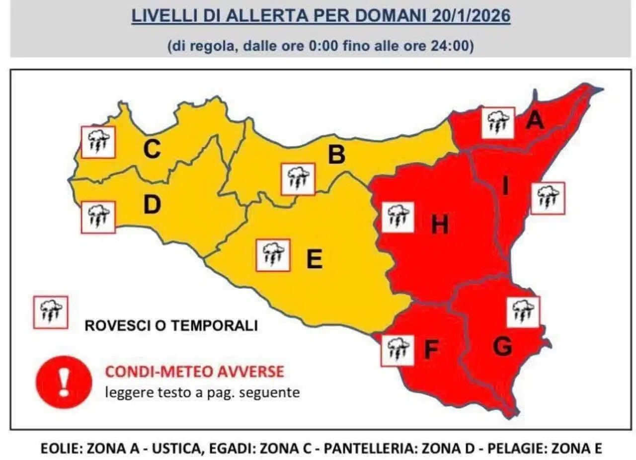 Lo comunica il nuovo bollettino emanato intorno alle sedici dal dipartimento regionale di Protezione civile che estende l’allarme che oggi ha riguardato il catanese e il messinese.