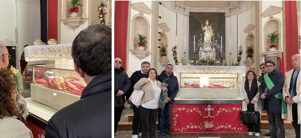 Durante la visita, i rappresentanti sindacali si sono fermati davanti al corpo di Santa Lucia per rendere omaggio alla sua figura e alla sua testimonianza di fede e sacrificio.