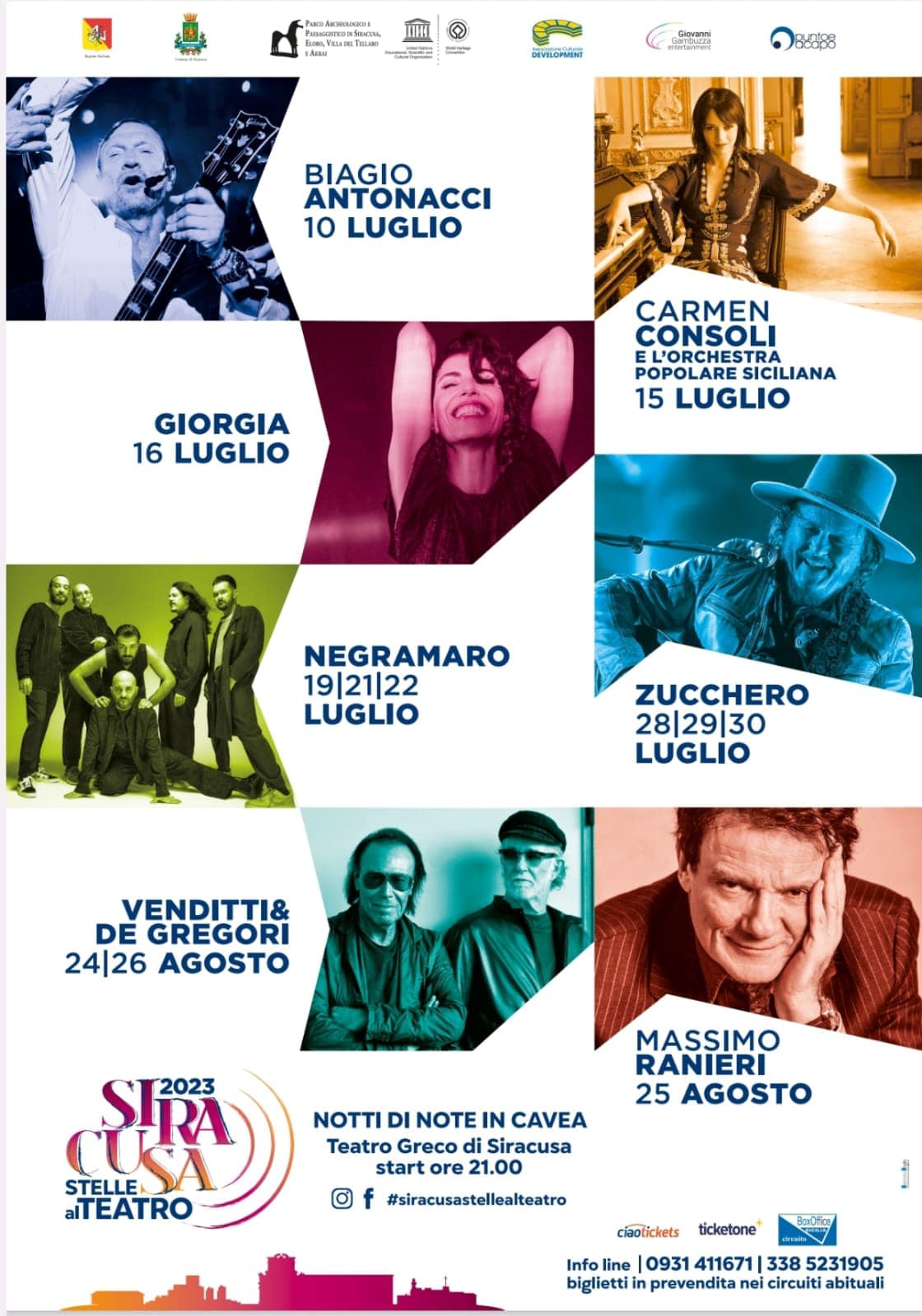 Si comincerà il 10 luglio col concerto di Biagio Antonacci, per poi continuare con Carmen Consoli, Giorgia, i Negramaro e Zucchero, questi ultimi con 3 date ciascuno.