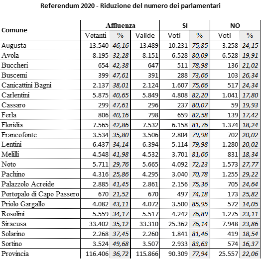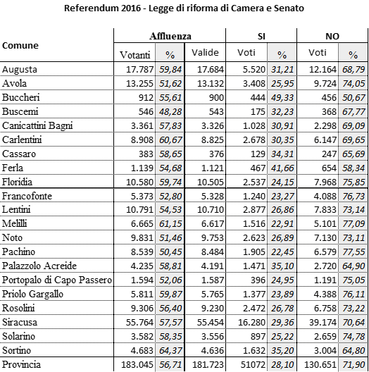 Riportiamo i risultati dei due ultimi referendum costituzionali in provincia.