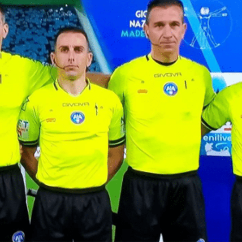 Il giovane arbitro diciannovenne Diego Alfonzetti della sezione di Acireale, aggredito e preso a calci e pugni in campo durante i play-off Under 17 tra Russo Sebastiano Calcio Riposto e Pedara, è stato schierato nel pre-partita al fianco dei colleghi Simone Sozza, Giuseppe Perrotti, Marcello Rossi e Daniele Doveri. Alfonzetti è poi salito in t...