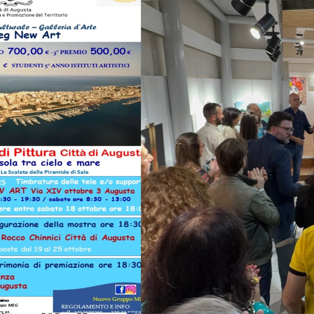 L’arte invade le strade e gli scorci più suggestivi di Augusta con il 1° Trofeo Regionale di Pittura Estemporanea, intitolato “Oltre l’isola tra cielo e mare”. L’iniziativa, promossa dal Nuovo Gruppo Meg con il sostegno dell’Assessorato alla Cultura e Promozione del Territorio, si preannuncia come un evento di grande richiamo per artisti, appa...